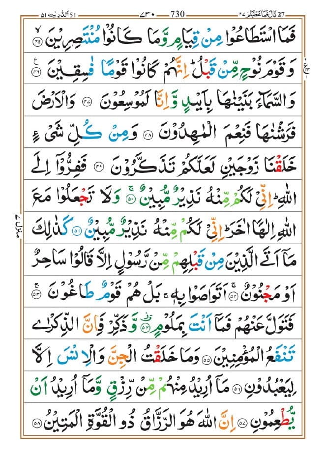 Surah Az Zariyat Page 730